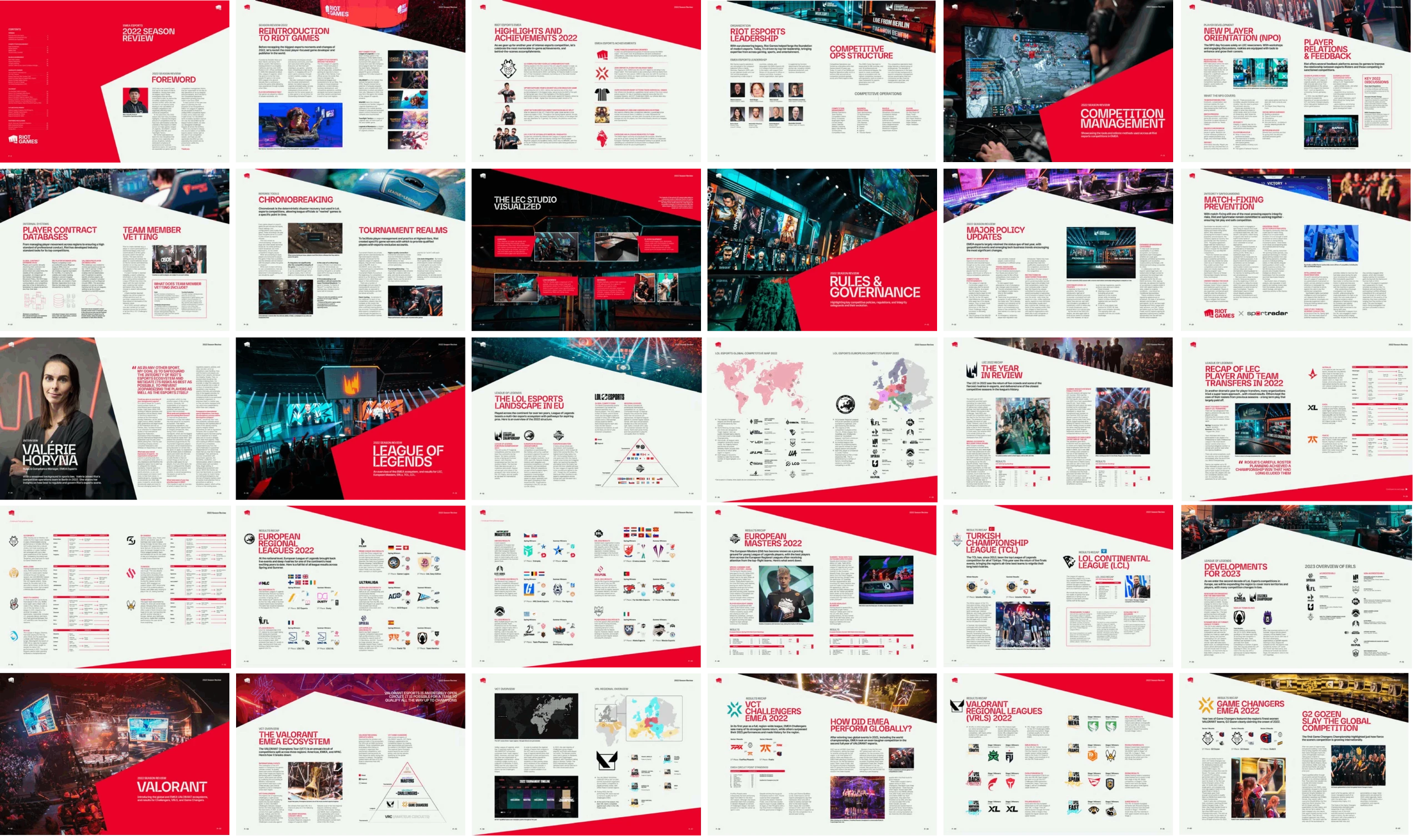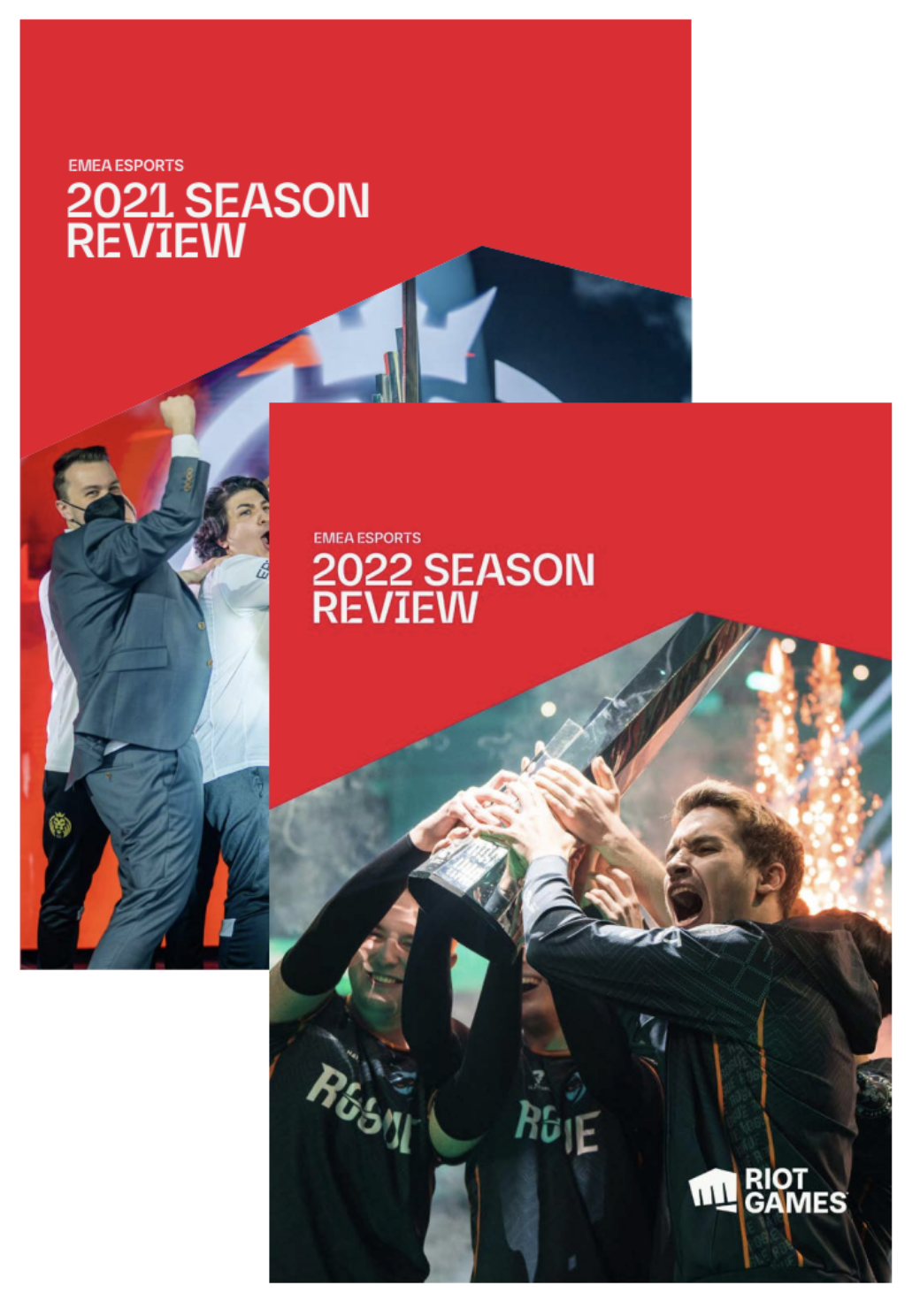 Through 2021 and 2023, I worked with Riot Games’ competitive operations team in Berlin, Germany to produce annual magazine-sized reports based on Riot’s esports initiatives in the EMEA region.